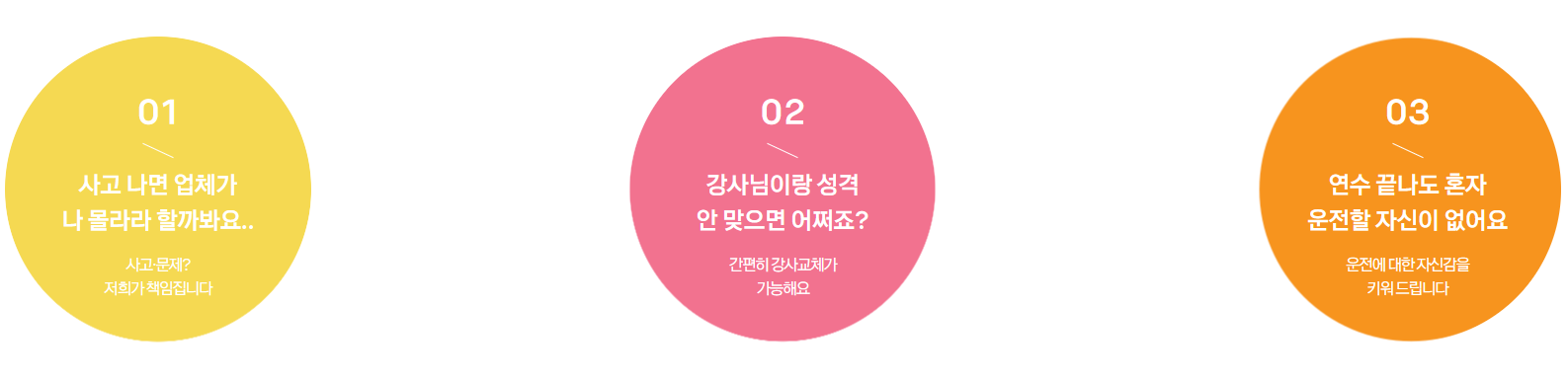 운전면허증, 편한 복장, 운동화, 자차 연수 시 본인 차량을 준비하시면 됩니다.