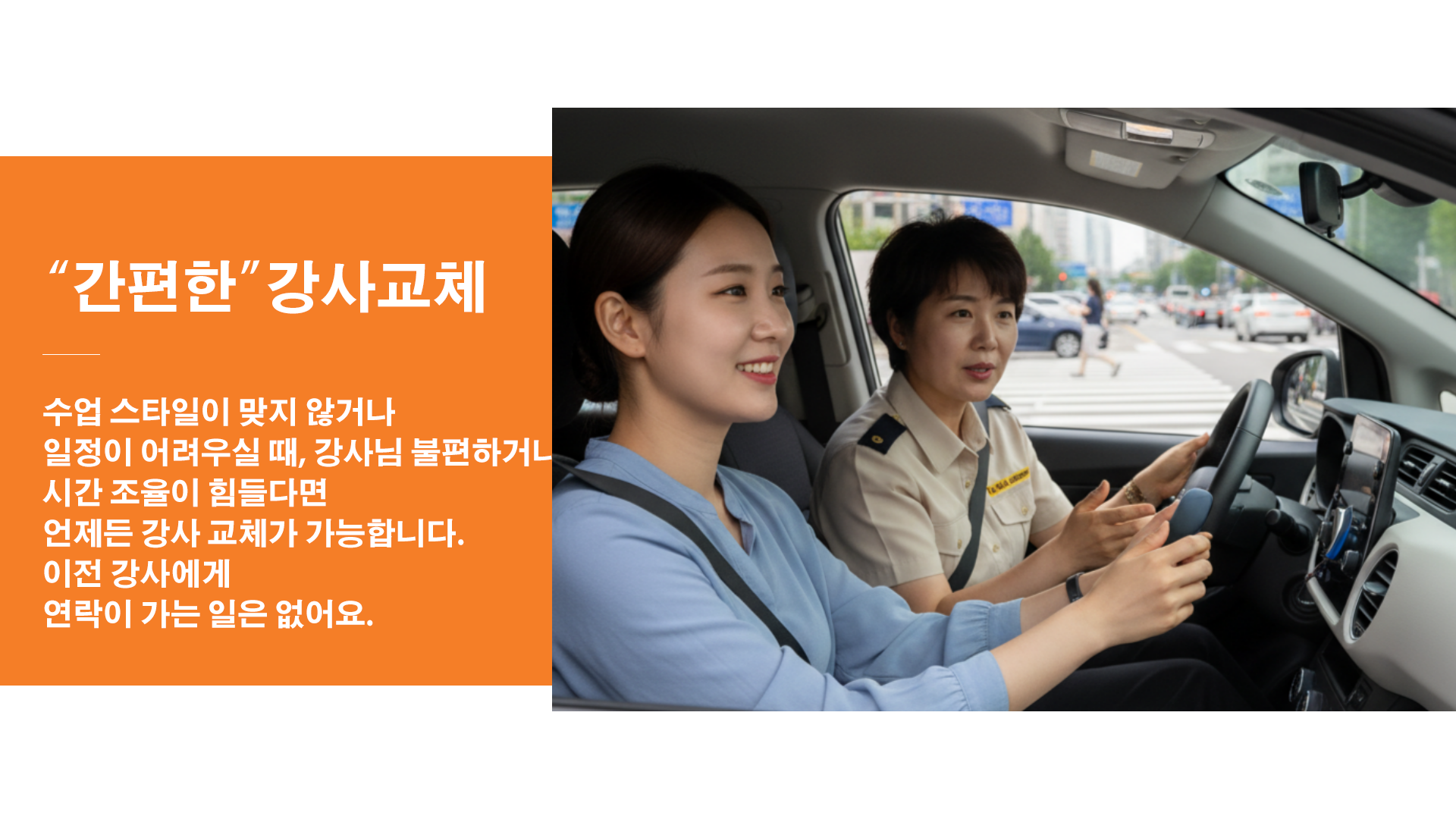 보조 브레이크가 장착된 차량으로 진행되며, 출발 전 차량 상태 점검 후 안전한 구간부터 주행을 시작합니다.
